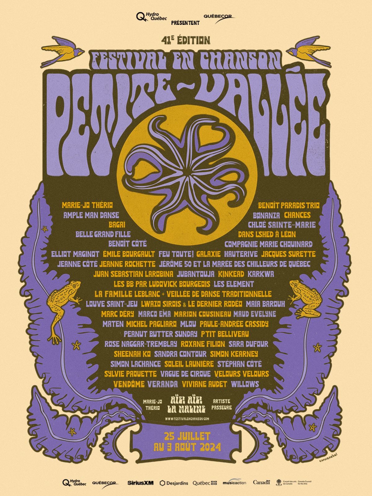 Abri pour la chanson et véritable passerelle permettant l’épanouissement de la relève autrice-compositrice-interprète, le Festival en chanson de Petite-Vallée dévoile une 41e programmation qui met plus que jamais en lumière la diversité et la richesse de de la scène musicale francophone et autochtone. Inspiré par l’univers poétique de son artiste passeure Marie-Jo Thério, l’événement qui aura lieu du 25 juillet au 3 août prochains et qui se déroulera sous le thème « Aïe! Aïe! la maline », soulignera l’audace et l’effervescence créative en proposant plus de soixante rencontres artistiques intimistes qui prendront vie dans le cadre chaleureux et authentique du petit village gaspésien.